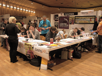 Fans machen Comics: Im Kleinen Saal der Kongresshalle wurde eine Signier-Insel für die Macher von Fanzines eingerichtet.